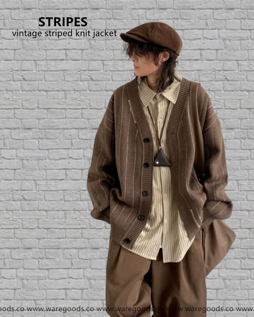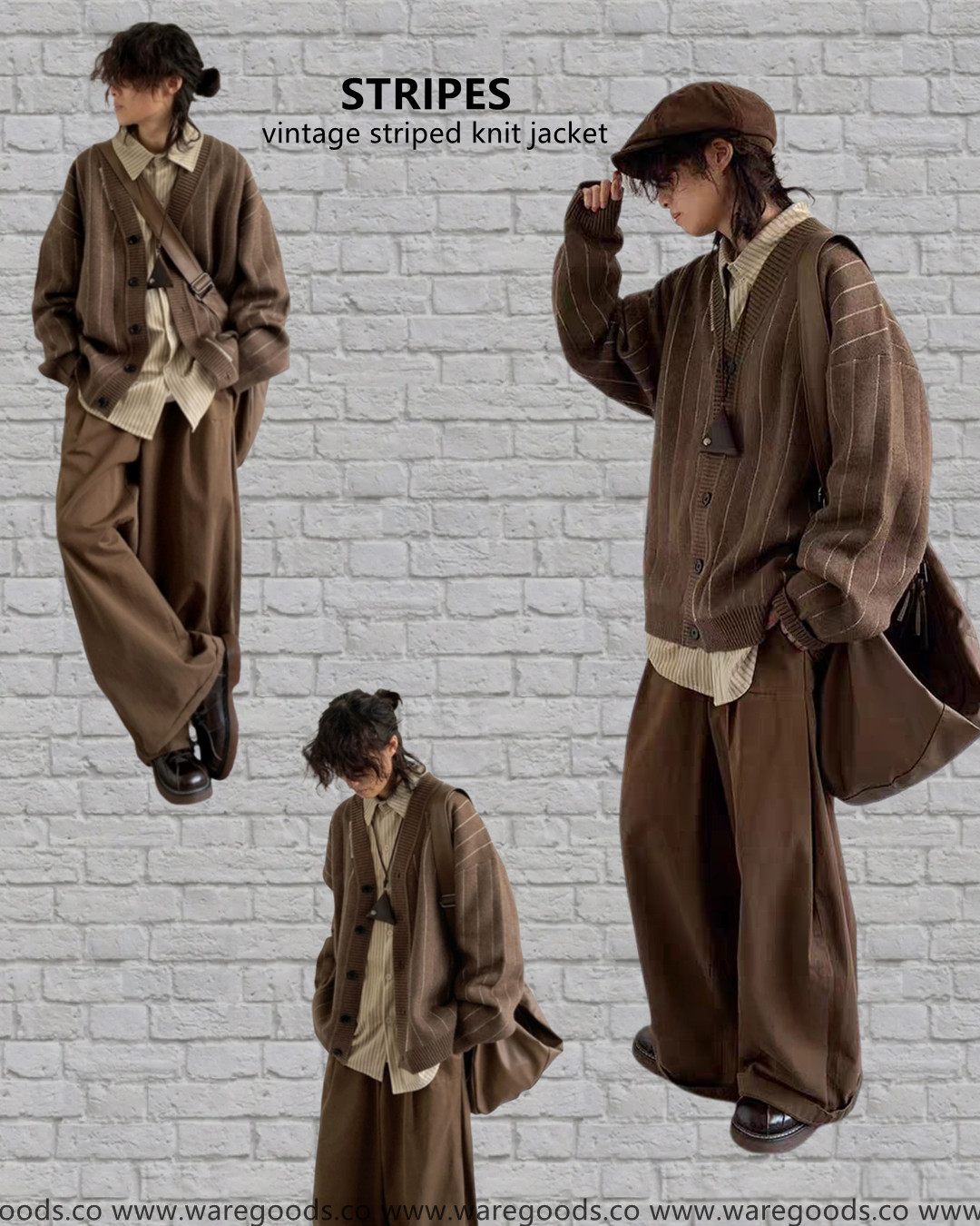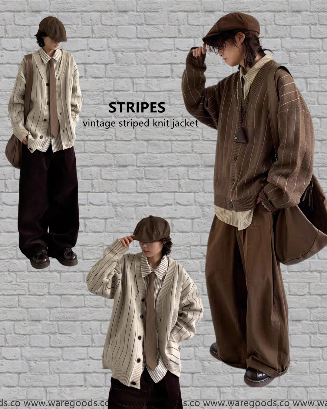 🔸W006復古條紋針織外套 –M 衣長 69cm 胸圍 116cm 袖長49cm –L 衣長 71cm 胸圍 120cm 袖長50cm –XL衣長 73cm 胸圍 124cm 袖長51cm –color: 米色 啡色 –oversize cutting –unisex By WAREGOODS (1)(FB)(IG) waregoods.co (2)Whatsapp +852 56491196 https://www.waregoods.co/ *凡購物滿以上金額免運費* 香港消費滿HKD 500 澳門消費滿HKD 800 台灣消費滿 NT 5000