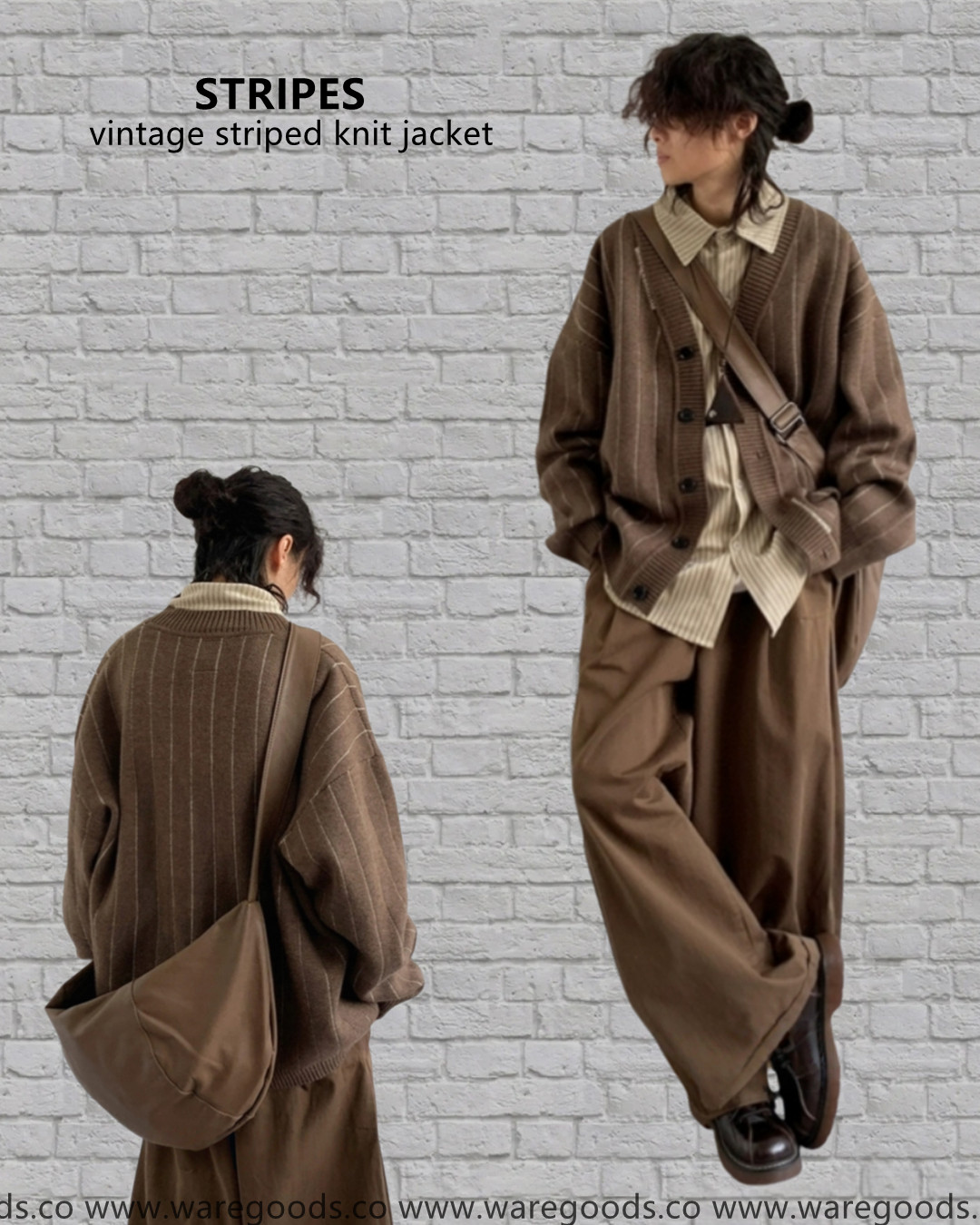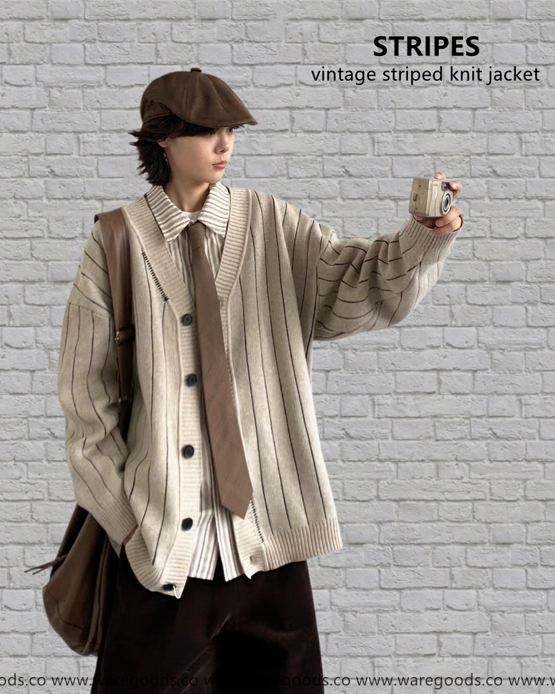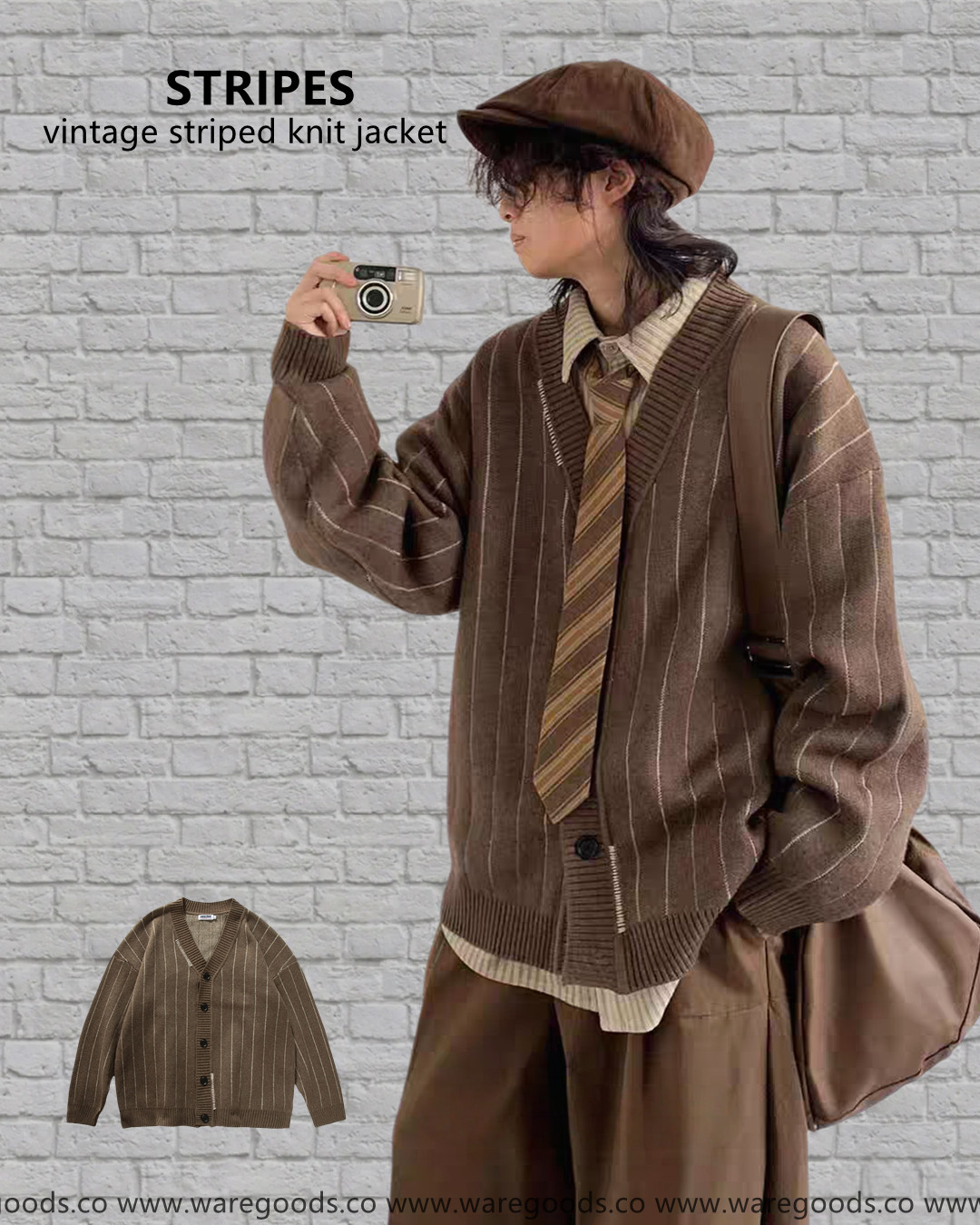 🔸W006復古條紋針織外套 –M 衣長 69cm 胸圍 116cm 袖長49cm –L 衣長 71cm 胸圍 120cm 袖長50cm –XL衣長 73cm 胸圍 124cm 袖長51cm –color: 米色 啡色 –oversize cutting –unisex By WAREGOODS (1)(FB)(IG) waregoods.co (2)Whatsapp +852 56491196 https://www.waregoods.co/ *凡購物滿以上金額免運費* 香港消費滿HKD 500 澳門消費滿HKD 800 台灣消費滿 NT 5000